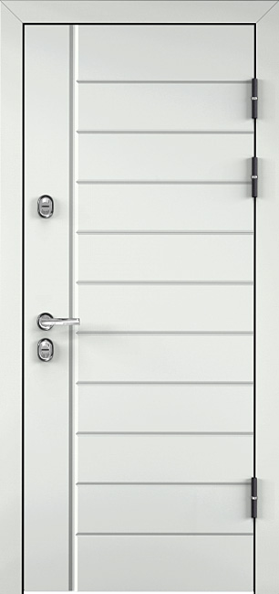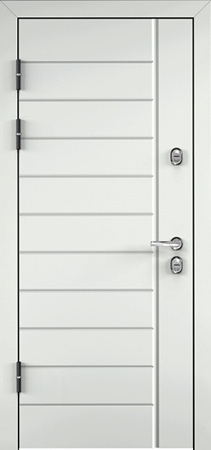 Эта белоснежная входная дверь с линиями №30 станет стильным и надежным элементом для любого интерьера. Благодаря отделке из панелей МДФ с ПВХ-покрытием, дверь выглядит элегантно и обладает высокой устойчивостью к внешним повреждениям. Внешний вид дверного полотна дополнен утонченными линиями, что придает ей современный, лаконичный вид. Прочный каркас из профильных труб 50х25 мм и лист металла толщиной 2 мм обеспечивают отличную защиту и долгий срок службы. Два контура резинового уплотнителя эффективно защищают от шума и холода, создавая комфорт в помещении. Замки Просам и Мосрентген с тремя ригелями гарантируют надежную безопасность. Дополнительно можно заказать зеркала, стеклопакеты и кованые элементы, что делает дверь универсальной для разных дизайнерских решений. Квартирная дверь входная белоснежного цвета с линиями №30 от производителя: быстрое изготовление и монтаж в Мытищах, индивидуальные размеры, широкий выбор материалов и фурнитуры, официальная гарантия до 10 лет.