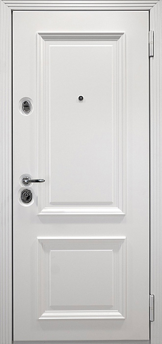 Белая входная дверь стандартная №36 идеально подходит для тех, кто ищет простоту и надежность. Внешняя и внутренняя отделка из МДФ накладки придает дверям элегантный и современный вид, сочетая прочность и долговечность. Материал отделки отличается устойчивостью к механическим повреждениям и воздействию внешней среды, сохраняя при этом привлекательный внешний вид. Каркас из профильной трубы с толщиной металла 2 мм и ребра жесткости гарантируют необходимую прочность и безопасность, а блокираторы обеспечивают дополнительную защиту. Входная дверь оснащена двухконтурным резиновым уплотнителем, что помогает сохранять тепло и защищать от внешних шумов. Замки модели Просам и Мосрентген с тремя ригелями обеспечат надежную защиту вашего дома или офиса. Дверь также может быть дополнена зеркалом, стеклопакетами и коваными элементами, а также оснащена видеодомофоном, что делает модель №36 универсальным решением для любых нужд. Белая входная дверь стандартная №36 от производителя: быстрое изготовление и монтаж в Мытищах, индивидуальные размеры, широкий выбор материалов и фурнитуры, официальная гарантия до 10 лет.