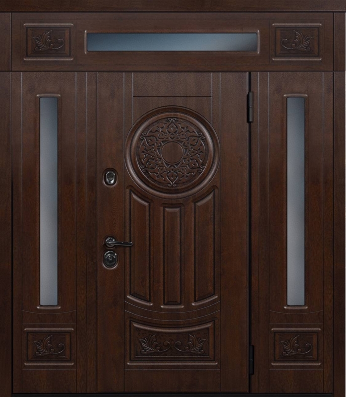 Эта нестандартная парадная дверь с фрамугой №6 — отличный выбор для тех, кто ценит элегантность и долговечность. Внешняя и внутренняя отделка из МДФ придает дверям стильный и современный вид, а также защиту от механических повреждений. МДФ устойчива к царапинам и вмятинам, что делает дверь идеальной для долгосрочной эксплуатации. Каркас из профильной трубы 50х25 мм и лист металла толщиной 2 мм обеспечивают прочность и надежность, а ребра жесткости из профильных труб гарантируют дополнительную устойчивость. В двери установлены блокираторы, два контура уплотнителей из резины, что повышает звуко- и теплоизоляцию. Замки от известных производителей, таких как Просам и Мосрентген, обеспечат надежную защиту. Возможность комбинировать отделку, добавлять зеркало, стеклопакет или кованые элементы позволяет легко адаптировать дверь под любые предпочтения. Нестандартная парадная дверь с фрамугой №6 от производителя: быстрое изготовление и монтаж в Мытищах, индивидуальные размеры, широкий выбор материалов и фурнитуры, официальная гарантия до 10 лет.