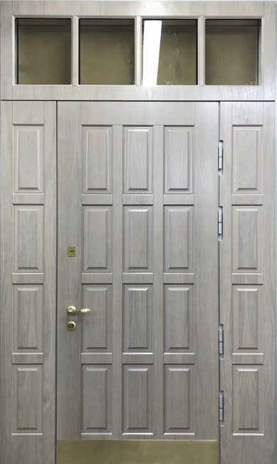Входная дверь с остекленной фрамугой №1 привлекает внимание благодаря стильному и современному дизайну. Ее внешняя и внутренняя отделка из МДФ выглядит элегантно и долговечно, а также устойчива к механическим повреждениям, таким как царапины и вмятины. Каркас из профильной трубы и металл толщиной 2 мм гарантируют прочность и надежность. Наличие фрамуги позволяет создать эффектное освещение и визуально расширяет пространство, при этом сохранение теплоизоляции обеспечено двумя контурами резинового уплотнителя. Блокираторы и качественные замки, такие как Просам и Мосрентген, надежно защищают от взлома. Возможность дополнить дверь стеклопакетом, зеркалом или коваными элементами делает эту модель еще более универсальной для различных интерьеров. Входная дверь с остекленной фрамугой №1 от производителя: быстрое изготовление и монтаж в Мытищах, индивидуальные размеры, широкий выбор материалов и фурнитуры, официальная гарантия до 10 лет.