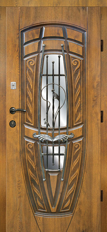 Для загородного дома важна дверь, которая умеет быть не только красивой, но и практичной. Натуральное дерево в отделке делает её внешне солидной и теплой, а декоративная ковка добавляет изящества и превращает вход в стильный акцент фасада. В основе конструкции лежит прочный стальной каркас с листом металла толщиной 1,5 мм и ребрами жесткости, а противосъёмные блокираторы обеспечивают дополнительный уровень защиты. Особого внимания заслуживает терморазрыв, выполненный в коробке и полотне: он надежно изолирует дом от холода, предотвращает промерзание и сохраняет уют даже при сильных морозах. Входная дверь уличная с ковкой №22 также оснащена тройным контуром магнитного уплотнения, что усиливает герметичность и помогает снизить шум. Конструкция позволяет выбирать размеры и дополнения по вкусу, включая стеклопакет, зеркало или видеодомофон, создавая гармонию между безопасностью, удобством и выразительным дизайном. Входная дверь уличная с ковкой №22 от производителя: быстрое изготовление и монтаж в Мытищах, индивидуальные размеры, широкий выбор материалов и фурнитуры, официальная гарантия до 10 лет.