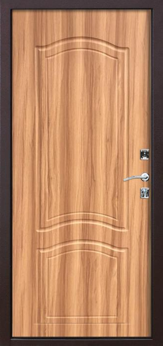 Элегантный ореховый оттенок всегда ассоциируется с надёжностью и уютом, а в сочетании с металлической основой он приобретает ещё и солидный характер. Панели МДФ с ПВХ-покрытием не только придают двери выразительный внешний вид, но и защищают её от случайных царапин, сохраняя поверхность безупречной на долгие годы. Дверь МДФ в частный дом цвета орех №531 создаёт гармоничный акцент на фасаде коттеджа или органично вписывается в интерьер квартиры и офиса. Каркас из профильной трубы и стальной лист толщиной 2 мм образуют прочную основу, усиленную рёбрами жёсткости. Для безопасности предусмотрены два замка российского производства: сувальдный Просам и цилиндровый Мосрентген, оба с надёжной системой ригелей. Дополнительно конструкцию можно разнообразить зеркалом, стеклопакетом или коваными элементами, подчеркнув индивидуальность дома и вкус его владельца. Дверь МДФ в частный дом цвета орех №531 от производителя: быстрое изготовление и монтаж в Мытищах, индивидуальные размеры, широкий выбор материалов и фурнитуры, официальная гарантия до 10 лет.