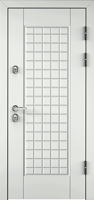 Белый цвет всегда символизирует чистоту и лёгкость, а на входной двери он ещё и подчёркивает современный вкус владельца. МДФ-плита с аккуратным вырезом «плитка» создаёт интересный декоративный эффект, благодаря которому строгая поверхность получает стильный рельеф и выглядит солидно как в частном доме, так и в офисном пространстве или городской квартире. Белая входная дверь МДФ с вырезом "плитка" в центре №532 изготовлена на основе прочного каркаса из профильной трубы с усиленными рёбрами жёсткости и металлическим листом толщиной 2 мм. Конструкция оснащена двумя замками российского производства — сувальдным Просам и цилиндровым Мосрентген, что обеспечивает надёжную защиту. При желании её можно дополнить зеркалом, коваными элементами, стеклопакетом или даже умными биометрическими замками. Такая дверь не только надёжна, но и способна стать выразительной деталью экстерьера или интерьера. Белая входная дверь МДФ с вырезом "плитка" в центре №532 от производителя: быстрое изготовление и монтаж в Мытищах, индивидуальные размеры, широкий выбор материалов и фурнитуры, официальная гарантия до 10 лет.