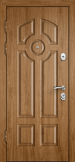 Филёнчатая отделка всегда придаёт дверному полотну особый шарм, создавая эффект глубины и аккуратного рельефа. Входная дверь МДФ с внешней панелью под филёнку №537 универсальна и одинаково хорошо смотрится на фасаде частного дома, в офисе или в квартире. Отделка из МДФ-плиты устойчива к мелким повреждениям, не выгорает и сохраняет аккуратный вид при ежедневной эксплуатации, а при необходимости легко комбинируется с другими декоративными элементами. В основе конструкции — каркас из профильной трубы, лист стали толщиной 2 мм и рёбра жёсткости, обеспечивающие надёжность и жёсткость всей системы. Для удобства и безопасности предусмотрены два замка: сувальдный Просам и цилиндровый Мосрентген. Два контура уплотнения повышают комфорт эксплуатации, а при желании дверь можно дополнить зеркалом, стеклопакетом или коваными вставками, сделав её не только прочной, но и выразительной частью интерьера. Входная дверь МДФ и внешней панелью под филенку №537 от производителя: быстрое изготовление и монтаж в Мытищах, индивидуальные размеры, широкий выбор материалов и фурнитуры, официальная гарантия до 10 лет.