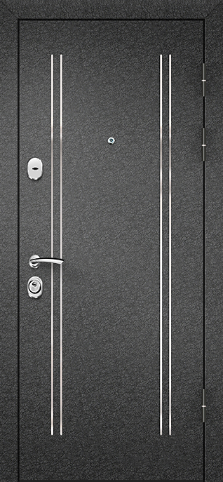 Дверь металлическая в порошке №59 — надежное решение для квартир, офисов и подъездов, где требуется прочная конструкция и аккуратный внешний вид. Снаружи используется молотковое напыление, которое не боится механических повреждений и долго сохраняет насыщенный цвет, а внутренняя поверхность отделана ламинатом, создающим ощущение уюта и подчеркивающим практичность модели. Каркас собран из профильной трубы 50х25 мм, усилен ребрами жесткости и листом стали толщиной 2 мм, что придает двери устойчивость к силовым нагрузкам. Дополнительную защиту обеспечивают два замка: верхний сувальдный «Просам» и нижний цилиндровый «Мосрентген», оба с тремя ригелями. Два контура резинового уплотнения помогают справляться со сквозняками, а при желании дверь можно укомплектовать шумо- и теплоизоляцией. Модель №59 легко адаптируется под любые требования: возможна комбинация отделок, установка зеркала, стеклопакета или декоративной ковки. Дверь металлическая в порошке №59 от производителя: быстрое изготовление и монтаж в Мытищах, индивидуальные размеры, широкий выбор материалов и фурнитуры, официальная гарантия до 10 лет.