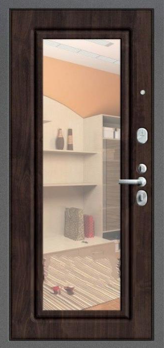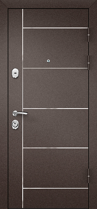 Каркас из профильной трубы и стальной лист толщиной 2 мм обеспечивают прочность конструкции и устойчивость к взлому, а два контура уплотнителей защищают помещение от сквозняков и уличного шума. Входная дверь в квартиру с зеркалом №10 выделяется сочетанием практичного молоткового напыления снаружи и аккуратной плиты МДФ внутри. Такое покрытие не боится механических повреждений и перепадов температуры, долго сохраняя первоначальный вид. Зеркало на внутренней стороне делает прихожую светлее и визуально просторнее, заменяя полноценное настенное. Дополнительные блокираторы и система ребер жёсткости усиливают надежность. Возможность изготовления в любых размерах позволяет адаптировать модель под особенности квартиры, офиса или частного дома, сохранив баланс между эстетикой и безопасностью. Входная дверь в квартиру с зеркалом №10 от производителя: быстрое изготовление и монтаж в Мытищах, индивидуальные размеры, широкий выбор материалов и фурнитуры, официальная гарантия до 10 лет.