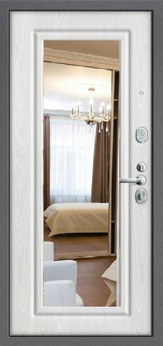 Белый цвет придаёт этой модели лёгкость и универсальность, а зеркало на внутренней стороне делает её особенно удобной для квартир и офисов, где важно сочетать практичность и эстетику. Дверь входная металлическая белая с зеркалом №51 изготовлена на основе прочного стального каркаса с листом металла толщиной 2 мм и усилена рёбрами жёсткости, что обеспечивает надёжность и долговечность. Плиты МДФ во внутренней и внешней отделке устойчивы к повреждениям и сохраняют аккуратный вид даже при интенсивном использовании. Два контура уплотнения помогают удерживать тепло и блокировать сквозняки, а пара замков — сувальдный Просам и цилиндровый Мосрентген — обеспечивают высокий уровень защиты. Зеркальная вставка экономит пространство и визуально расширяет коридор, делая дверь не только защитной, но и функциональной частью интерьера. Дверь входная металлическая белая с зеркалом №51 от производителя: быстрое изготовление и монтаж в Мытищах, индивидуальные размеры, широкий выбор материалов и фурнитуры, официальная гарантия до 10 лет.