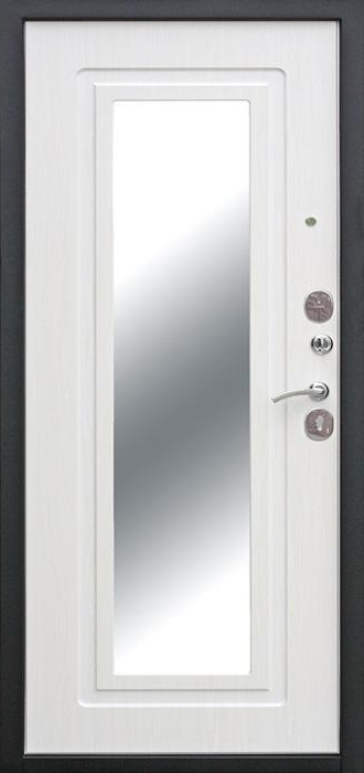 Надёжность металлической двери всегда в приоритете, но когда она получает дополнительное оснащение, результат становится особенно удобным. Входная дверь с зеркалом №78 удачно объединяет прочность конструкции и практичность деталей: массивный каркас из профильной трубы, лист стали толщиной 2 мм и усиленные рёбра жёсткости формируют крепкий защитный барьер, а зеркало на внутренней стороне делает её частью интерьера, экономя место и добавляя визуального простора. Снаружи используется молотковое напыление, устойчивое к царапинам и погодным перепадам, благодаря чему дверь подходит как для квартиры, так и для частного дома. Внутренняя отделка выполнена плитой МДФ, которая выглядит стильно и сохраняет аккуратность даже при активной эксплуатации. Два контура уплотнения помогают защитить помещение от сквозняков, а при необходимости конструкцию можно дополнить шумоизоляцией, современными замками и даже видеодомофоном. Входная дверь с зеркалом №78 от производителя: быстрое изготовление и монтаж в Мытищах, индивидуальные размеры, широкий выбор материалов и фурнитуры, официальная гарантия до 10 лет.