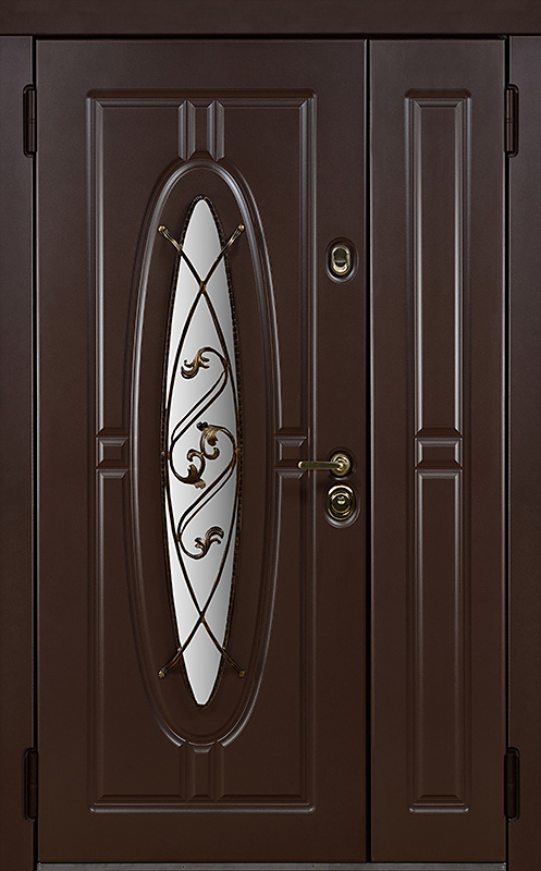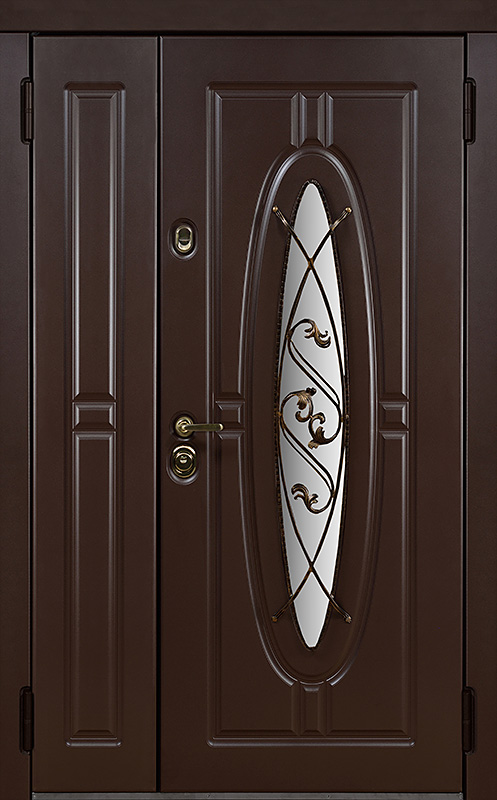 Двойная уличная дверь с овальным стеклом и художественной ковкой №14 — это уникальное сочетание функциональности и эстетики. Панели МДФ с ПВХ-покрытием, используемые как для внешней, так и для внутренней отделки, обладают высокой стойкостью к внешним воздействиям, сохраняя свой внешний вид на долгие годы. Внешний декор в виде художественной ковки придаёт двери особый шарм, подчеркивая её стиль и индивидуальность. Двойная уличная дверь с овальным стеклом и художественной ковкой №14 от производителя: быстрое изготовление и монтаж в Мытищах, индивидуальные размеры, широкий выбор материалов и фурнитуры, официальная гарантия до 10 лет.