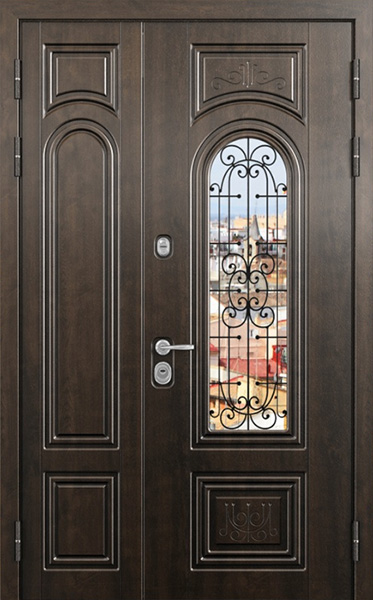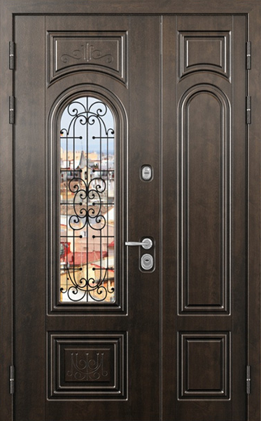 Двупольная стальная дверь со стеклопакетом и кованым узором №24 станет отличным выбором для тех, кто ценит не только безопасность, но и стиль. Внешняя и внутренняя отделка выполнены из МДФ, что придает двери элегантный и современный вид, а также обеспечивает высокую устойчивость к механическим повреждениям и износу. Стеклопакет и кованые элементы добавляют изысканности и уникальности, при этом сохраняя прочность конструкции. Двупольная стальная дверь со стеклопакетом и кованым узором №24 от производителя: быстрое изготовление и монтаж в Мытищах, индивидуальные размеры, широкий выбор материалов и фурнитуры, официальная гарантия до 10 лет.