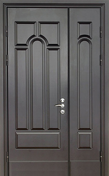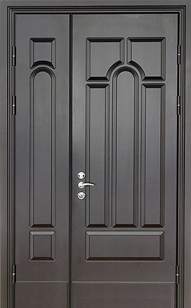 Металлическая двухстворчатая дверь для дома цвета графит №27 – это стильное и надежное решение для вашего жилья. Внешняя и внутренняя отделка выполнены из МДФ, что придает двери изысканный вид и увеличивает её стойкость к механическим повреждениям. Цвет графит придаёт двери современный и элегантный оттенок, который легко впишется в интерьер как частных домов, так и современных офисов. Металлическая двухстворчатая дверь для дома цвета графит №27 от производителя: быстрое изготовление и монтаж в Мытищах, индивидуальные размеры, широкий выбор материалов и фурнитуры, официальная гарантия до 10 лет.
