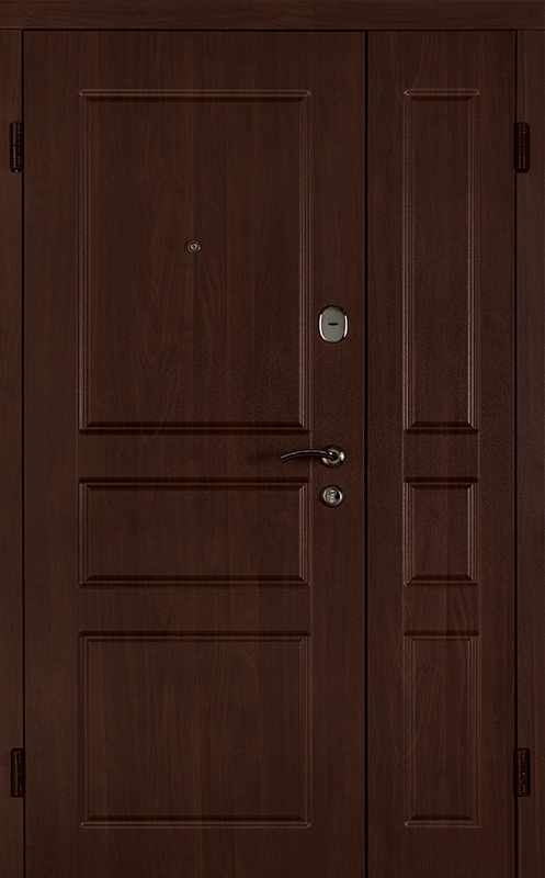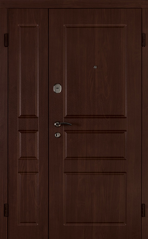 Коричневая входная полуторная дверь с филенчатой створкой №4 – это надежное и стильное решение для вашего дома или офиса. Внешняя и внутренняя отделка из МДФ с ПВХ обеспечивает долговечность и устойчивость к повреждениям, сохраняя при этом элегантный внешний вид. Прочные материалы конструкции, такие как профильная труба 50х25 мм и лист металла толщиной 2 мм, гарантируют стабильность и безопасность. Ребра жесткости из профильных труб 40х25 мм усиливают дверное полотно, а уплотнение с двумя контурами надежно защищает от внешних факторов. Несмотря на отсутствие терморазрыва, в двери реализованы терморазрывы в коробке и полотне, что помогает улучшить теплоизоляцию. Возможность выбора дополнительных опций, таких как шумоизоляция, делает эту дверь универсальной для различных условий эксплуатации. Коричневая входная полуторная дверь с филенчатой створкой №4 от производителя: быстрое изготовление и монтаж в Мытищах, индивидуальные размеры, широкий выбор материалов и фурнитуры, официальная гарантия до 10 лет.