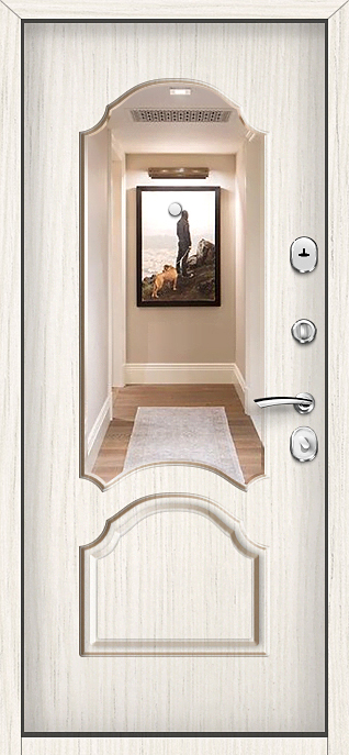 Входная дверь с зеркальной вставкой для прихожей №21 — это не просто надежное, но и стильное решение для частных домов, квартир и офисов. Благодаря прочному каркасу из профильной трубы 50х25 мм и металлическому полотну толщиной 2 мм, дверь гарантирует долговечность и высокую степень защиты. Внешняя отделка с порошковым напылением не только добавляет эстетичности, но и защищает от атмосферных воздействий, а внутренняя отделка из панелей МДФ ПВХ устойчива к механическим повреждениям. Вставка зеркала на двери добавляет современности и практичности, расширяя пространство прихожей. Два контура резинового уплотнителя эффективно предотвращают попадание холода и шума. Дверь оборудована двумя замками, что повышает безопасность. Также можно заменить замки на более современные модели и добавить опции, такие как стеклопакет или видеодомофон, что делает эту модель еще более универсальной. Входная дверь с зеркальной вставкой для прихожей №21 от производителя: быстрое изготовление и монтаж в Мытищах, индивидуальные размеры, широкий выбор материалов и фурнитуры, официальная гарантия до 10 лет.