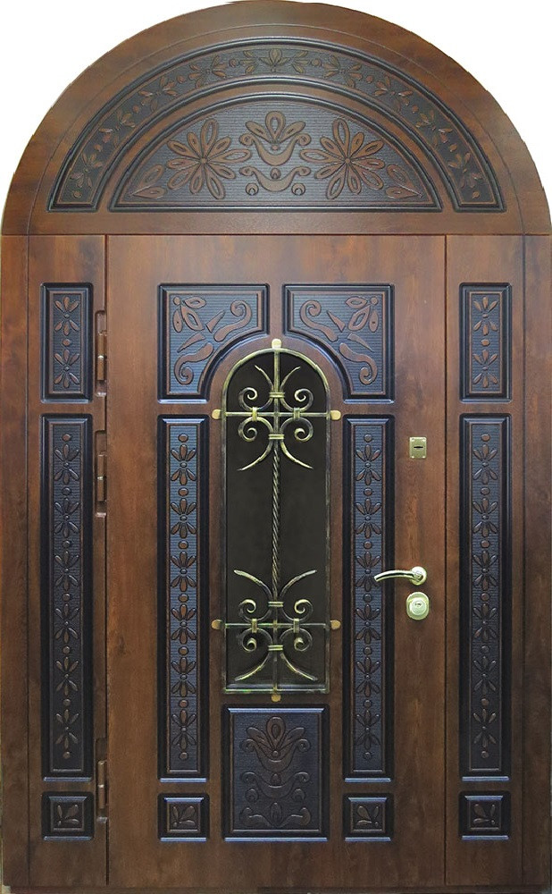 Арочная двустворчатая входная со стеклом дверь №32