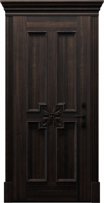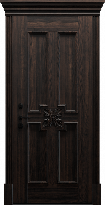 Эксклюзивная глянцевая дверь в частный дом с нестандартной фрезеровкой №24