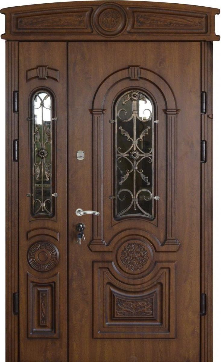 Натуральный массив дерева в отделке делает конструкцию не только практичной, но и выразительной, подчеркивающей архитектурный стиль загородного дома. Металлическая основа из профильной трубы с листом толщиной 2 мм и системой ребер жесткости обеспечивает прочность и надежность даже при активной эксплуатации. Дверь со стеклом входная уличная №402 гармонично сочетает декоративные свойства древесины и защитные качества стали, а вставка из стекла добавляет света в прихожую и визуально облегчает массивное полотно. Для защиты от холода предусмотрены два контура уплотнителей и блокираторы, усиливающие надежность системы. Итальянские замки Cisa — цилиндровый и сувальдный — с множеством ригелей обеспечивают высокий уровень безопасности. Возможность выбора направления открывания и дополнение двери коваными элементами или умными замками делает модель универсальной и подходящей для частных домов, где важны статус и комфорт. Дверь со стеклом входная уличная №402 от производителя: быстрое изготовление и монтаж в Мытищах, индивидуальные размеры, широкий выбор материалов и фурнитуры, официальная гарантия до 10 лет.