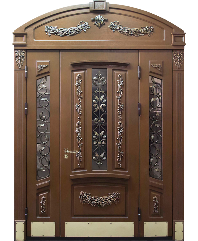 Арка придаёт входу особый характер и сразу выделяет дом среди соседних построек. Арочная входная дверь стеклопакет для загородного дома сочетает в себе статусность массивного дуба и современную практичность стеклопакета, который наполняет прихожую естественным светом и визуально облегчает массивное полотно. Стальной каркас с листом металла толщиной 2 мм и ребрами жёсткости обеспечивает надёжность, а два контура уплотнения защищают от сквозняков. Терморазрыв в коробке и полотне предотвращает промерзание, что особенно актуально для эксплуатации в загородных коттеджах. Натуральный дуб в отделке не только долговечен, но и устойчив к повреждениям, сохраняя презентабельный вид долгие годы. Такая дверь подчёркивает архитектурный стиль дома и позволяет совместить изысканность формы с практичностью современных технологий. Арочная входная дверь стеклопакет для загородного дома от производителя: быстрое изготовление и монтаж в Мытищах, индивидуальные размеры, широкий выбор материалов и фурнитуры, официальная гарантия до 10 лет.