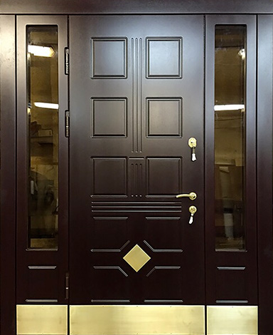 Натуральное дерево в отделке придаёт конструкции основательность и благородный внешний вид, а металлический каркас с листом стали толщиной 2 мм и системой ребер жёсткости обеспечивает надёжную защиту и долговечность. Входная дверь с остеклением №70 особенно востребована в частных домах и коттеджах, где важна не только безопасность, но и эстетика. Стеклянные элементы делают полотно визуально легче и наполняют прихожую естественным светом, при этом оставаясь частью прочной конструкции. Для комфорта предусмотрены два контура уплотнения, а терморазрыв в коробке и полотне защищает от промерзания и сохраняет тепло даже в сильные морозы. Итальянские замки Cisa цилиндрового и сувальдного типа дополняют высокий уровень безопасности. Возможность добавить кованые элементы, зеркало или стеклопакет позволяет адаптировать модель под архитектуру дома, подчёркивая индивидуальность и вкус владельцев. Входная дверь с остеклением №70 от производителя: быстрое изготовление и монтаж в Мытищах, индивидуальные размеры, широкий выбор материалов и фурнитуры, официальная гарантия до 10 лет.