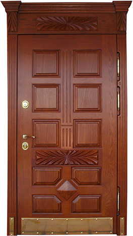 Эксклюзивная высокая входная дверь с железным отбойником №36 — это образец элегантности и функциональности, который идеально впишется в любой частный дом или коттедж. Изготовленная из массива дерева, она будет долго сохранять свой привлекательный внешний вид и устойчивость к внешним воздействиям. Прочная конструкция из профильных труб и листа металла толщиной 2 мм, усиленная ребрами жесткости, гарантирует надежность и долговечность. Терморазрыв в коробке и полотне помогает минимизировать теплопотери и защищает от перепадов температуры. Дверь оснащена высококачественными замками, что обеспечивает высокий уровень безопасности. Железный отбойник добавляет двери не только дополнительную защиту, но и стильный элемент дизайна. Эксклюзивная высокая входная дверь с железным отбойником №36 от производителя: быстрое изготовление и монтаж в Мытищах, индивидуальные размеры, широкий выбор материалов и фурнитуры, официальная гарантия до 10 лет.