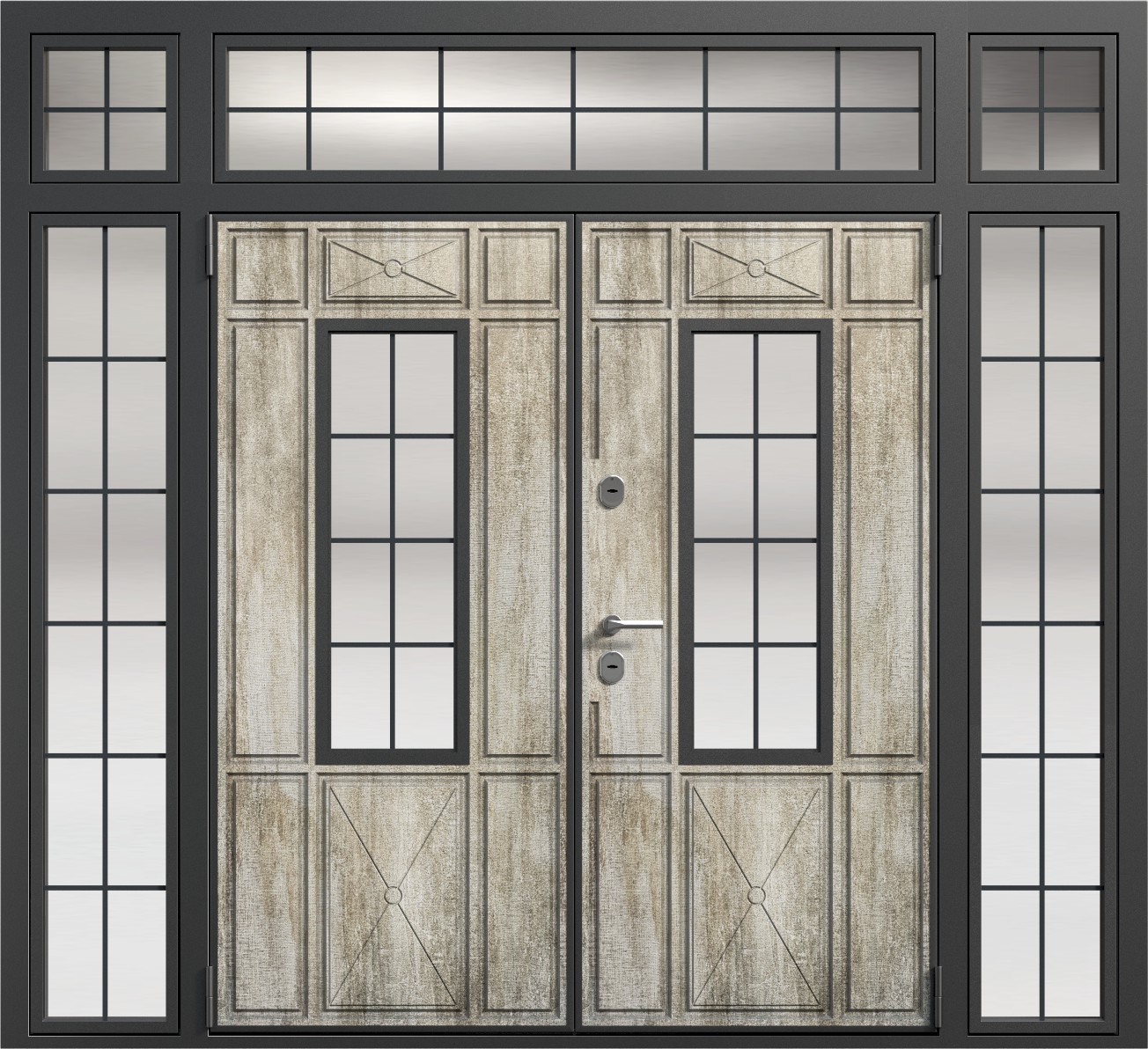 Парадная дверь с остекленной фрамугой №6 — это идеальный выбор для тех, кто ценит элегантность и функциональность. Внешняя отделка из панелей МДФ ПВХ обеспечивает долговечность и устойчивость к внешним воздействиям, что делает эту модель подходящей как для частных домов, так и для офисных помещений. Прочная конструкция с каркасом из профильной трубы 50x25 мм и листом металла толщиной 2 мм гарантирует долговечность и высокую безопасность. Замки Kale Kilit с тремя ригелями обеспечат надежную защиту, а уплотнение с двумя контурами эффективно защитит от шума и холода. Дополнительные элементы, такие как стеклопакеты, зеркала или кованые элементы, можно добавить по вашему желанию, позволяя адаптировать дверь под любые требования. Парадная дверь с остекленной фрамугой №6 от производителя: быстрое изготовление и монтаж в Мытищах, индивидуальные размеры, широкий выбор материалов и фурнитуры, официальная гарантия до 10 лет.