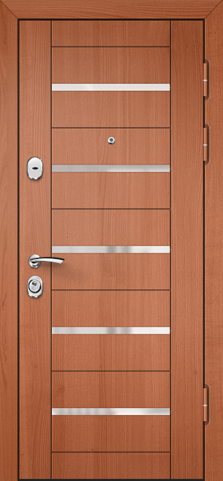 Современная входная дверь с цилиндровым замком №21 сочетает строгую надежность металлической конструкции и аккуратный внешний вид. Каркас из профильной трубы и лист стали толщиной 2 мм образуют прочный щит, усиленный ребрами жесткости и блокираторами. Накладки из МДФ придают полотну более «домашний» облик: материал не только эстетичен, но и практичен — ПВХ-покрытие стойко переносит небольшие повреждения и сохраняет первозданный вид долгие годы. Такая дверь подходит для квартиры, офиса или частного дома, где важно совместить защиту и стиль. Цилиндровый замок обеспечивает удобное и надежное закрывание, а два контура резинового уплотнителя защищают от сквозняков и лишнего шума. При желании возможно дополнить конструкцию тепло- и шумоизоляцией или установить замки другого типа, включая современные электронные системы. Современная входная дверь с цилиндровым замком №21 от производителя: быстрое изготовление и монтаж в Мытищах, индивидуальные размеры, широкий выбор материалов и фурнитуры, официальная гарантия до 10 лет.